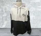 We have our black and white hoody for a casual look on and off the course. This hoody will keep you warm, but add a sense of style to your look too. This hoody is super soft and smooth textured finish. It is a mid weight 6.5 ounce with a fleece lining to add some warmth. The Fore Golf logo is embroidered and the FG is embroidered as well.