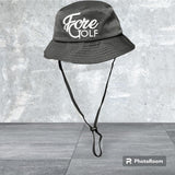 The all new Fore Golf Bucket cap. We added the chin strap in case the day on the course is windy.  The Fore Golf logo is 3D/Puff embroidered to have a raised look to it.