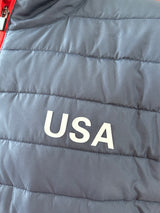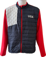 We added a little spin to the Hybrid for you to cheer on Team USA during the Ryder Cup this year. The upper shell is made of nylon and the sleeves, back and bottom is made from polyester.